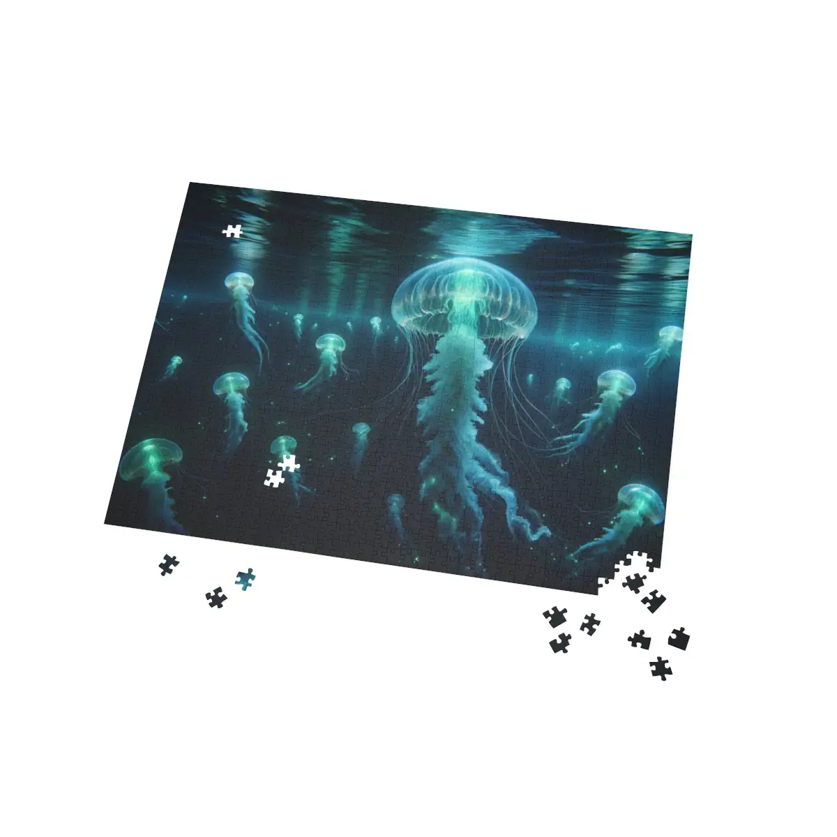 Unlock the magic of the ocean depths and bring home a piece of its wonder with our Bioluminescent Ballet Jellyfish Puzzle. Let the mesmerizing dance of the jellyfish light up your leisure time and spark your sense of wonder.